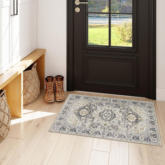 Vintage Pattern Area Rug 1'8"x2'8" Rectangular — Non-Slip, Durable & Absorbent Carpet, Soft Comfort Decorative Mat for Living Room, Entryway, Bedroom
