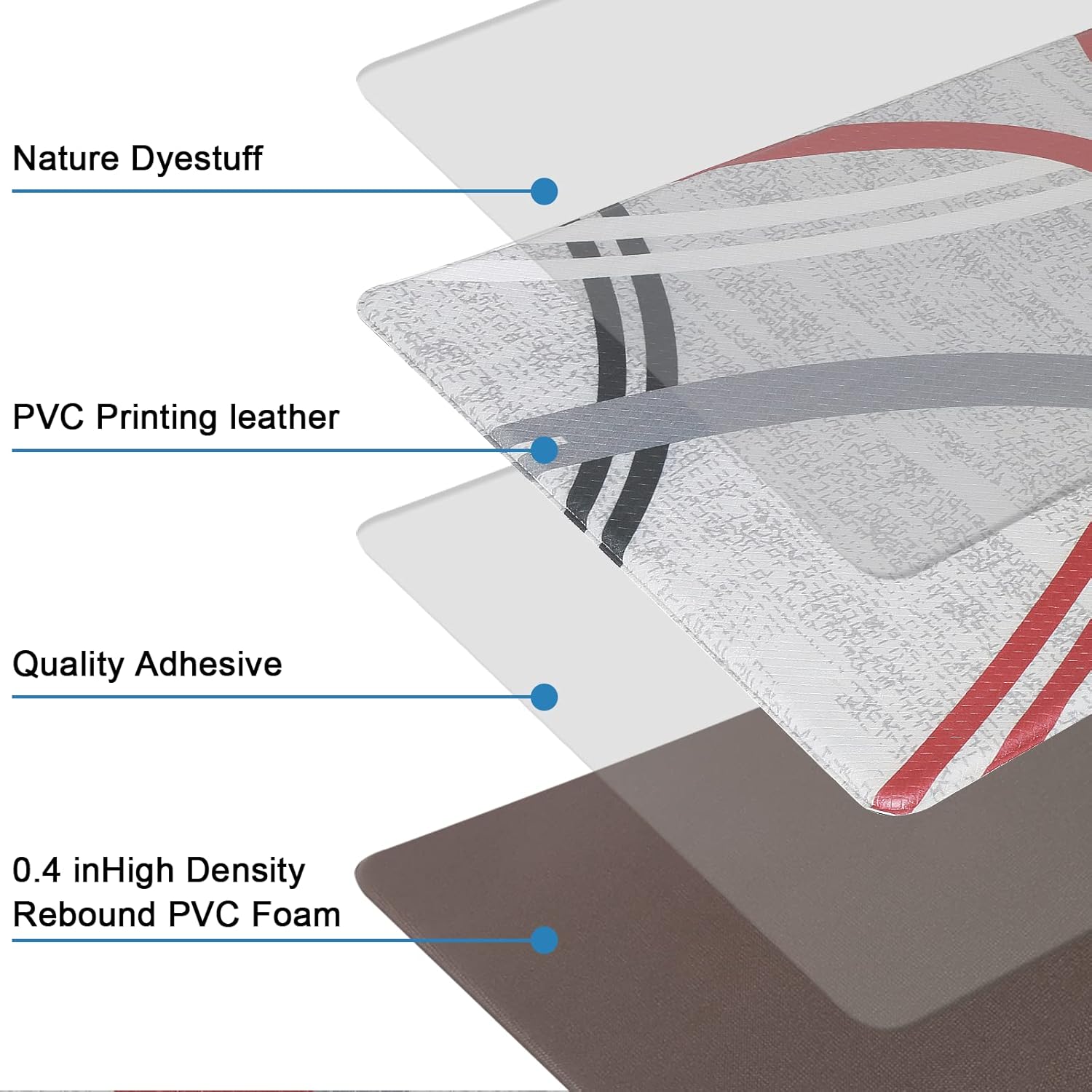 Add a touch of modern style and comfort to your home with this anti-fatigue non-slip floor mat. Measuring 17.5" x 32" (approx. 44 x 81 cm) and 0.4" thick (1 cm), this rectangular rug features a striking abstract line design in red, gray, black, and white. It is both stylish and functional, perfect for daily use.
